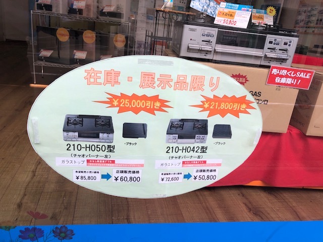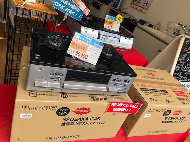 瓜破店にてガスコンロ・ファンヒーターのセールを行ってます。